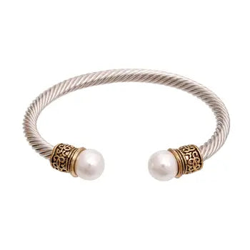 Designer White Pearl Cable Classic Bangle: Color / Adjustable / Multi Tone